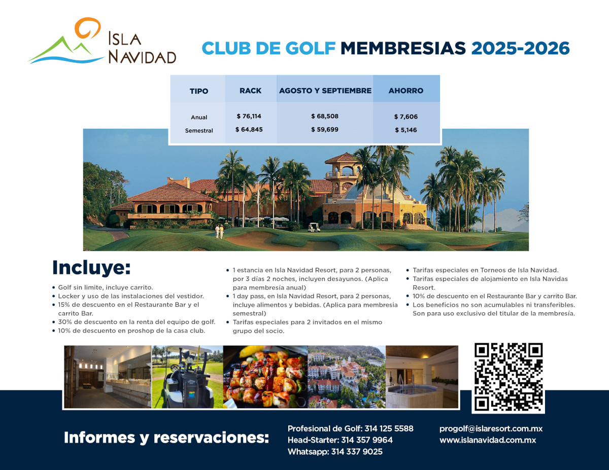Para informes y reservaciones, por favor mande un correo electrónico a progolf@islaresort.com.mx